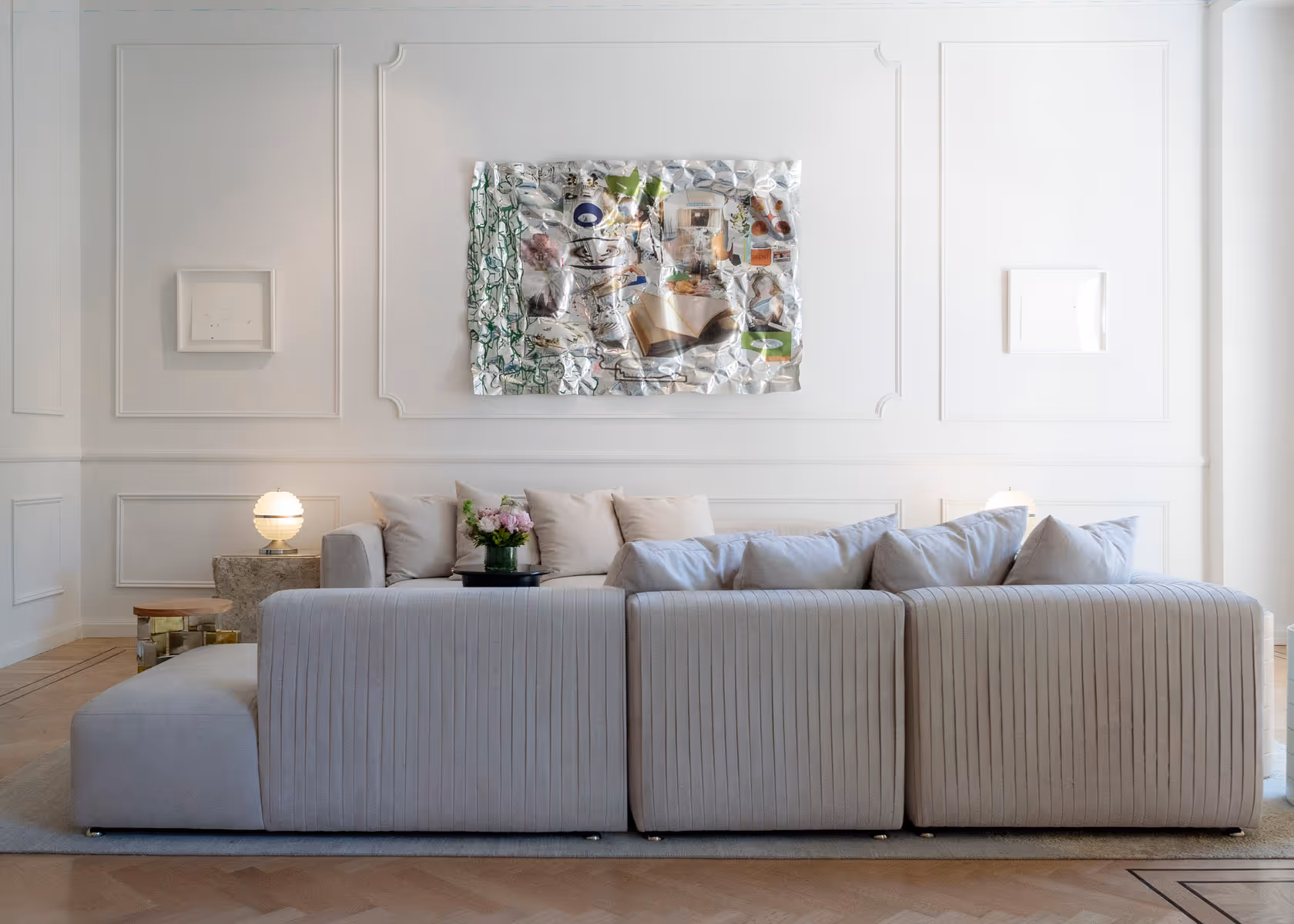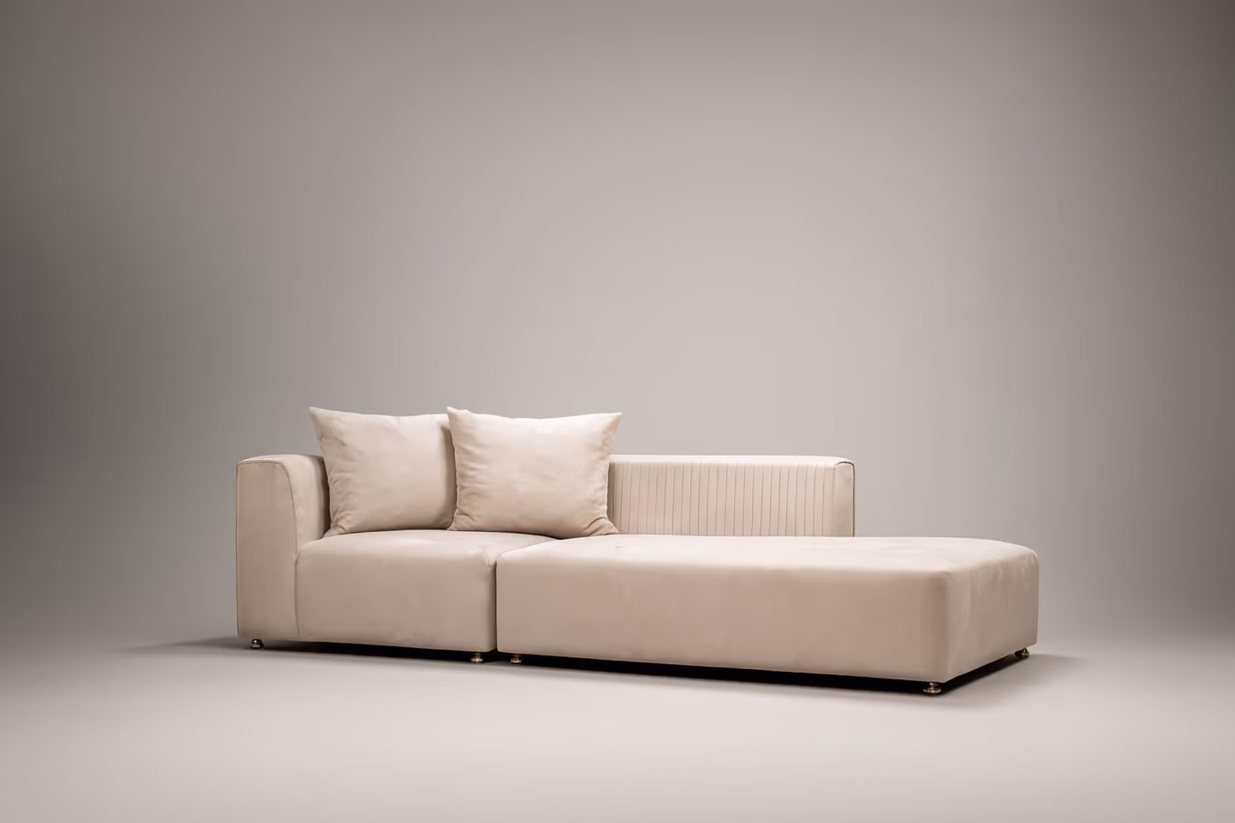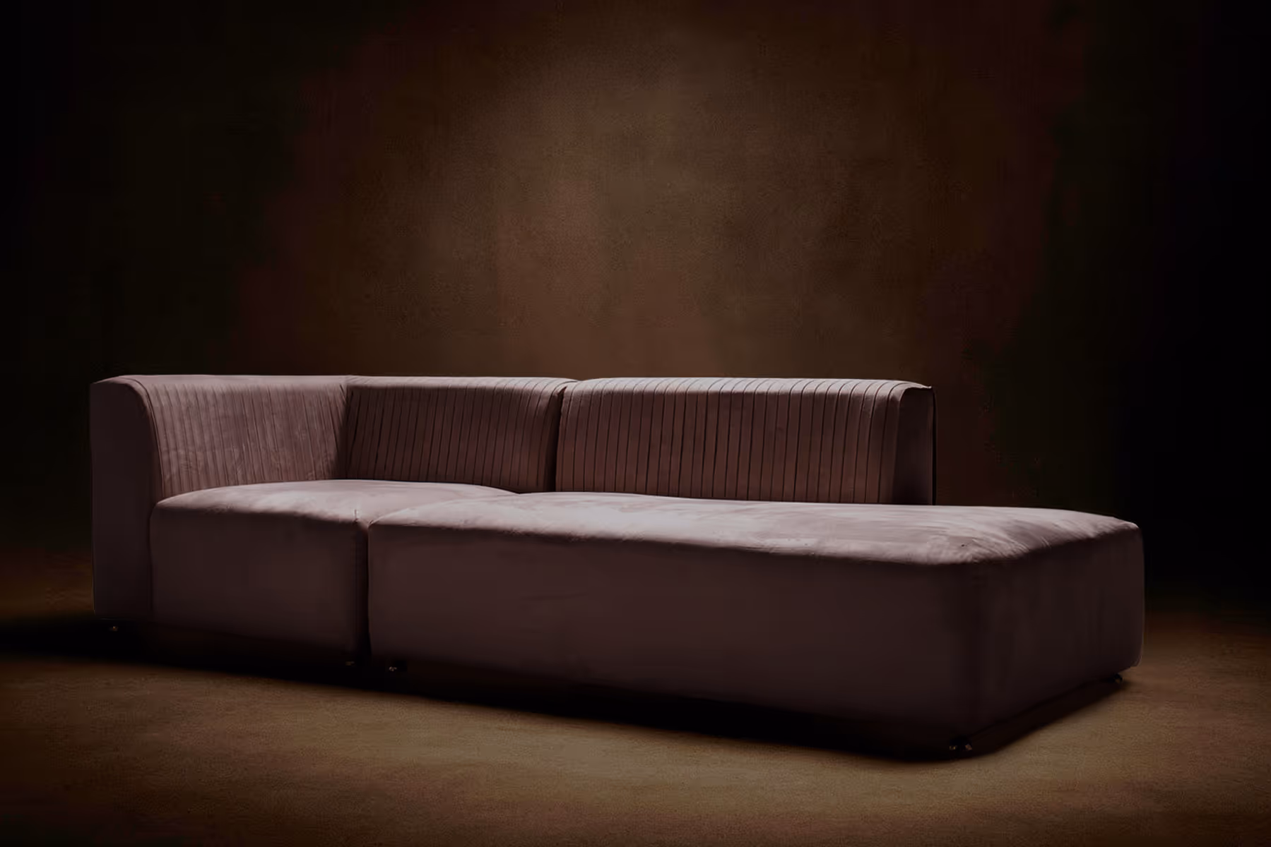 Pleaded back with hidden couture and hand carved bronze details.