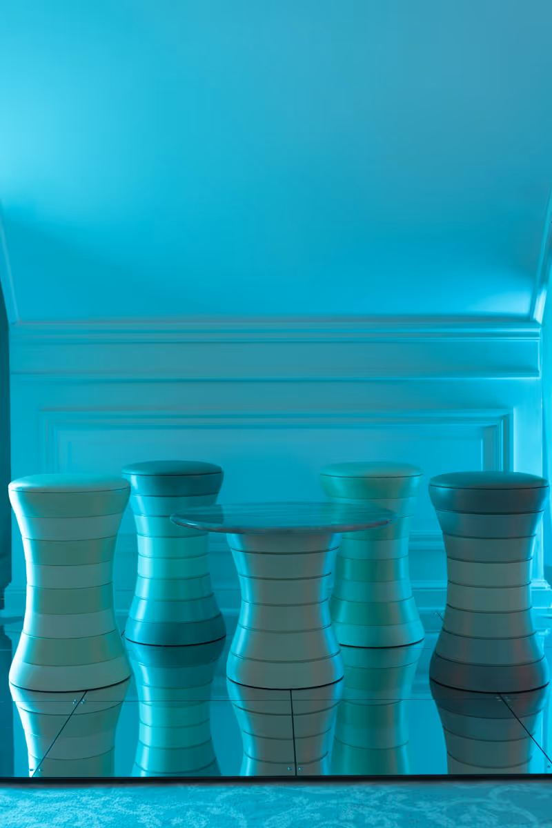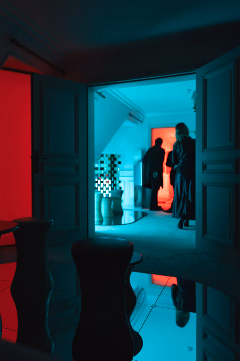 Things From transformed Suite 1835 at Le Meurice into an immersive installation that reimagines luxury hospitality. The classic suite becomes an experimental space with handcrafted pieces that respond to human presence—furniture that glows as guests move and a mirrored meditation cube generating AI-driven imagery that shifts with the room’s energy. Fully handmade by Isska, the installation merges craft and technology to create a new, living form of intimacy.